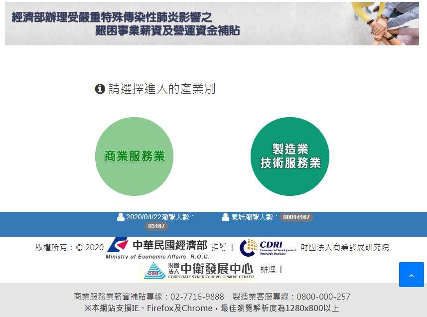 經濟部依據「經濟部對受嚴重特殊傳染性肺炎影響發生營運困難產業事業紓困振興辦法」,執行受疫情影響之艱困事業薪資及營運資金補貼方案,預計自109年4月22日10:00起開放線上申請,如有需要之企業,敬請詳參附件申請須知,並由下列網址連結進行線上作業。