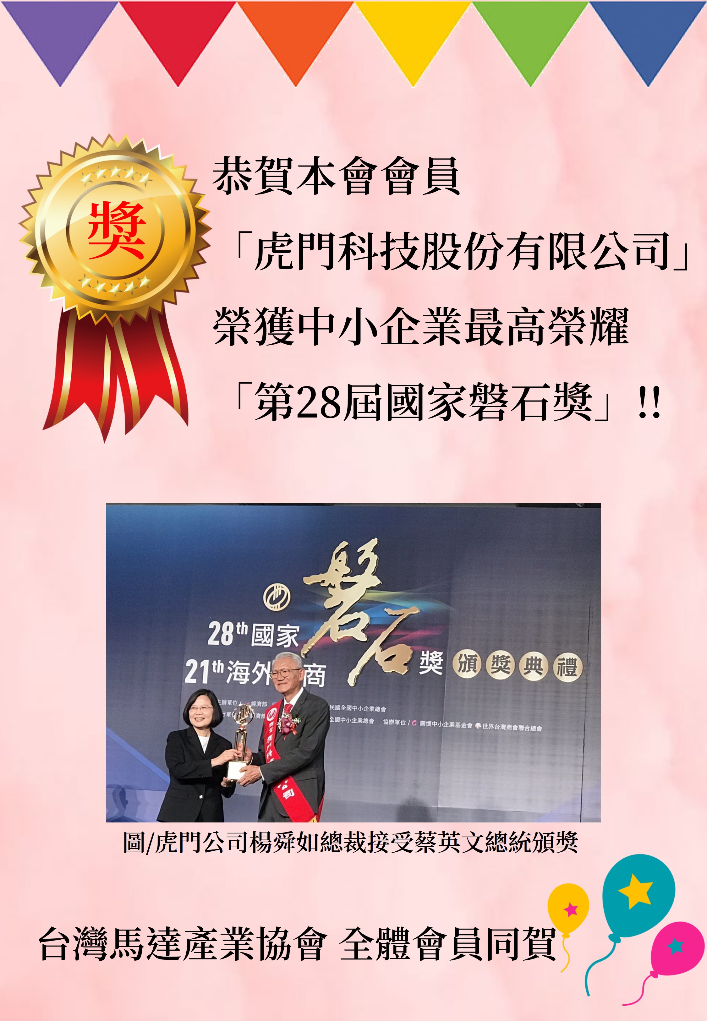 恭賀本會會員 「虎門科技股份有限公司」榮獲「第28屆國家磐石獎」