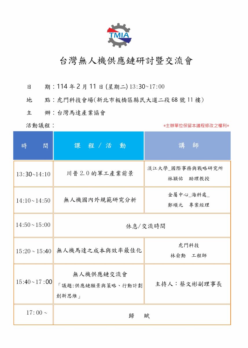 2/11(二)台灣無人機供應鏈研討暨交流會